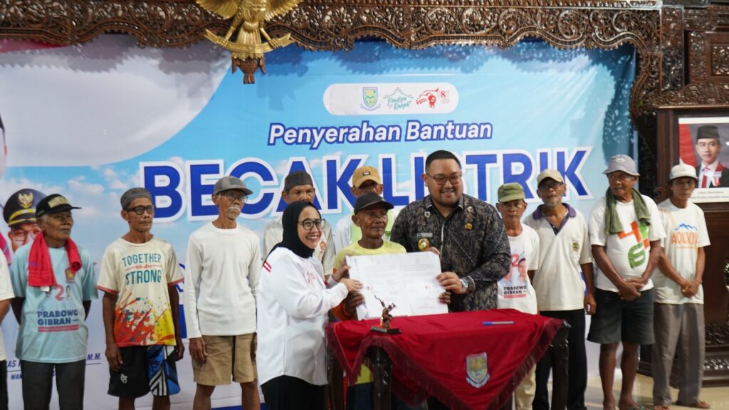 PURBALINGGA INFO – Raut bahagia tampak jelas di wajah Sudiono (60), warga Desa Penambongan, ketika menerima bantuan becak listrik dari Presiden RI Prabowo Subianto di Pendopo Dipokusumo, Kamis (4/12/25). Setelah lebih dari 25 tahun bermandi peluh mengayuh becak manual, kini ia bisa menggerakkan becak listrik hanya dengan menarik tuas gasnya.