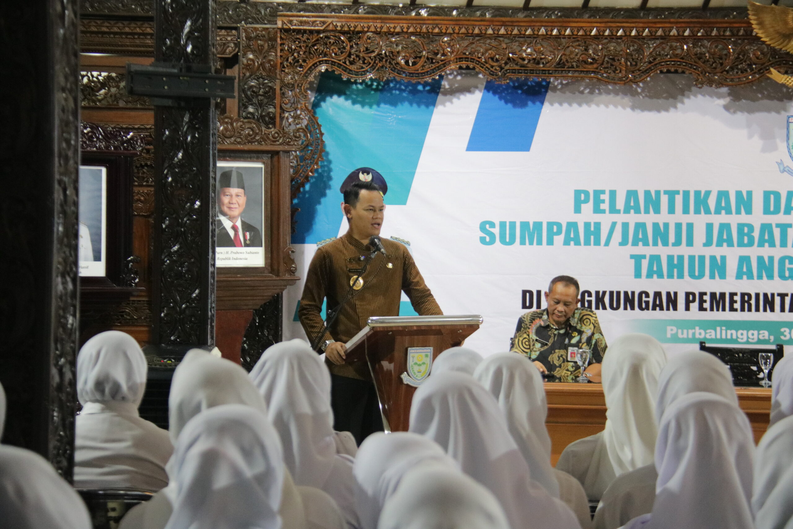 PURBALINGGA – Sebanyak 135 Aparatur Sipil Negara (ASN) formasi Tahun Anggaran 2025 resmi dilantik dan diambil sumpah/janji jabatan oleh Bupati Purbalingga, Fahmi Muhammad Hanif, di Pendopo Dipokusumo, Selasa (30/9/2025).