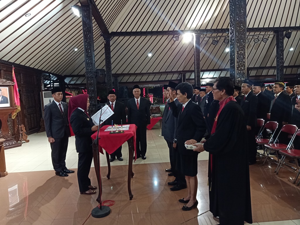 PURBALINGGA_Bupati Purbalingga Dyah Hayuning Pratiwi melantik 105 pejabat struktural Pimpinan Tinggi Pratama, Administrator dan Pengawas di lingkungan Pemerintah Kabupaten Purbalingga di Pendopo Dipokusumo, Senin malam, (6/1).  Pengambilan sumpah/janji dan pelantikan disaksikan ketua DPRD Purbalingga HR Bambang Irawan.