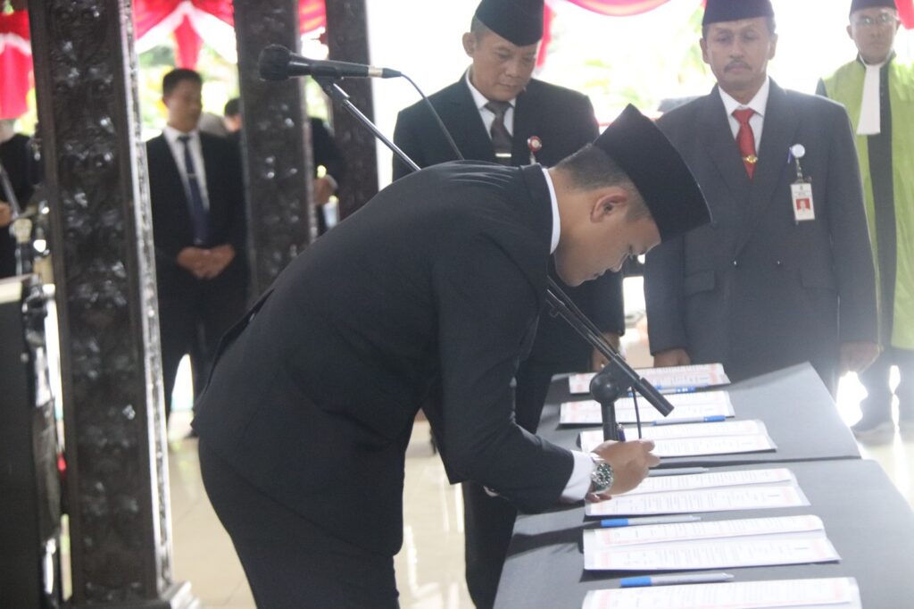 PURBALINGGA INFO – Bupati Purbalingga Fahmi Muhammad Hanif melantik enam Pejabat Pimpinan Tinggi Pratama di lingkungan Pemerintah Kabupaten Purbalingga. Pelantikan yang dirangkai dengan penyerahan Dokumen Pelaksanaan Anggaran (DPA) SKPD Tahun 2026 tersebut digelar di Pendopo Dipokusumo, Purbalingga, Jumat (2/12/26).