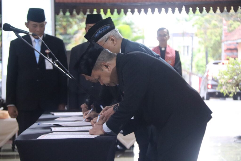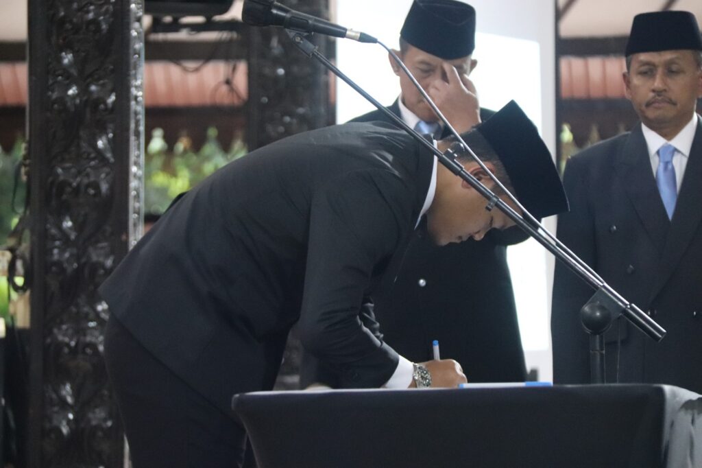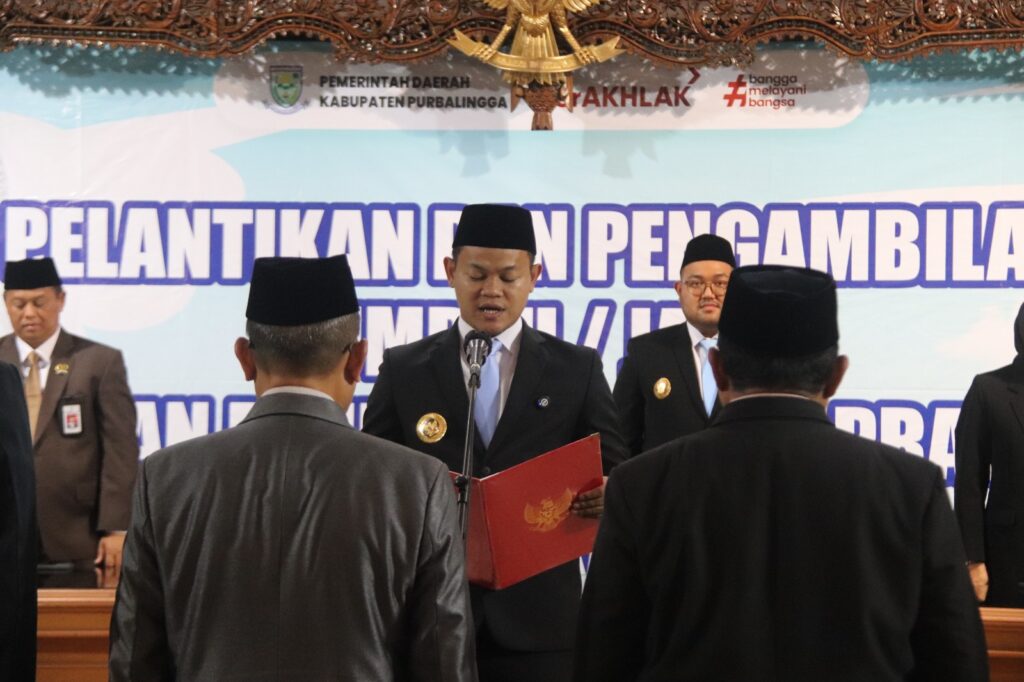 PURBALINGGA INFO – Bupati Purbalingga Fahmi Muhammad Hanif melantik lima Pejabat Pimpinan Tinggi Pratama di lingkungan Pemerintah Kabupaten Purbalingga. Pelantikan berlangsung di Pendopo Dipokusumo, Senin (12/1/26). Pelantikan juga dihadiri Wakil Bupati Dimas Prasetyahani, Wakil Ketua DPRD Aris Widiarso, serta Sekretaris Daerah Herni Sulasti.