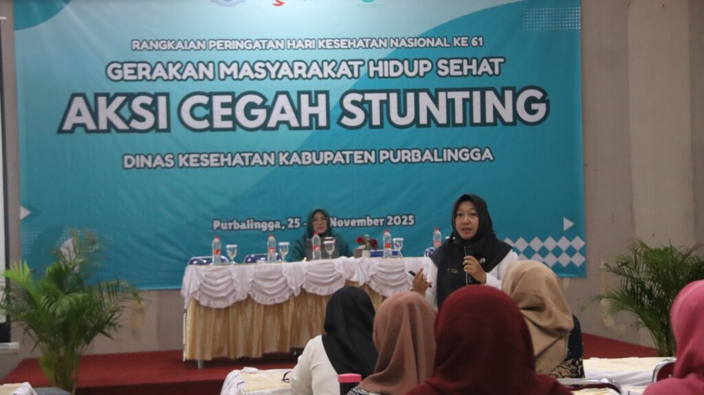 PURBALINGGA INFO – Upaya percepatan penurunan stunting di Kabupaten Purbalingga terus diperkuat melalui kegiatan Gerakan Masyarakat Hidup Sehat Aksi Cegah Stunting yang digelar Dinas Kesehatan Kabupaten Purbalingga di PM Collaboration Purbalingga, Rabu (26/11/2025).