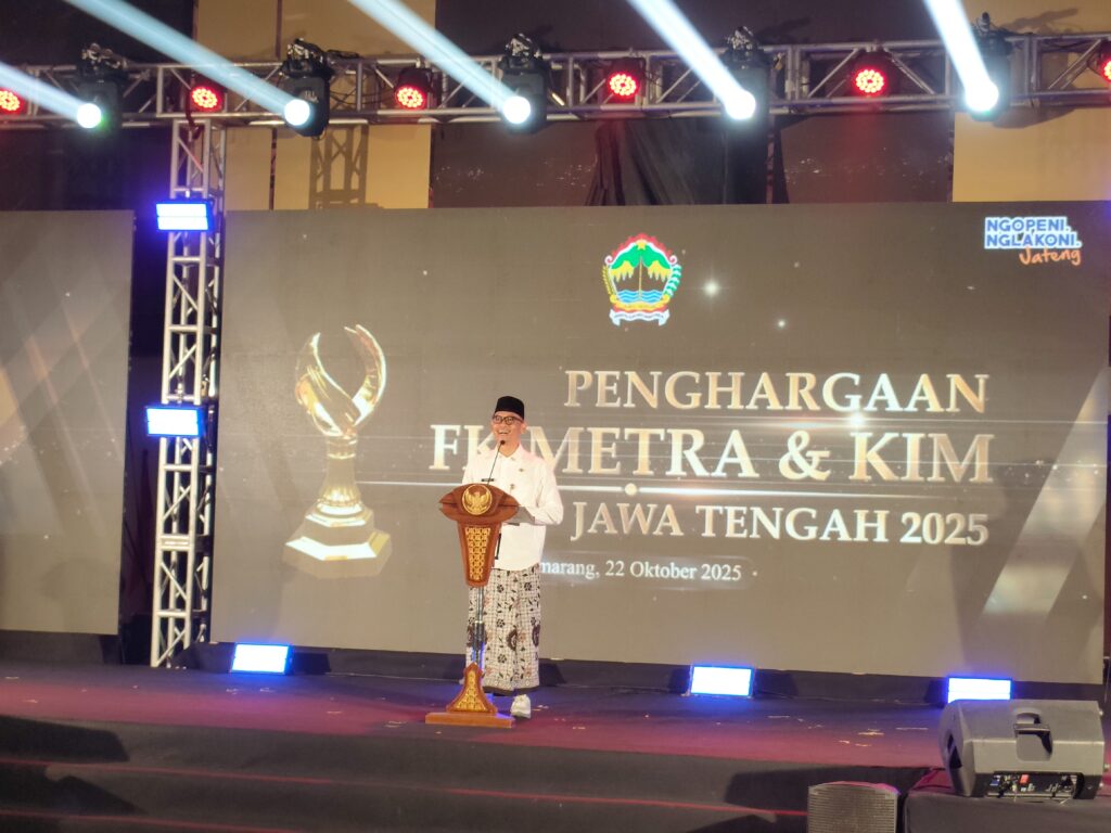 SEMARANG – Pemerintah Provinsi Jawa Tengah melalui Dinas Komunikasi dan Informatika (Diskominfo) menggelar Penganugerahan Penghargaan Lomba Forum Komunikasi Media Tradisional (FK Metra) dan Komunitas Informasi Masyarakat (KIM) Tahun 2025 di Grasia Convention, Hotel Grasia, Semarang, Rabu (22/10/2025).