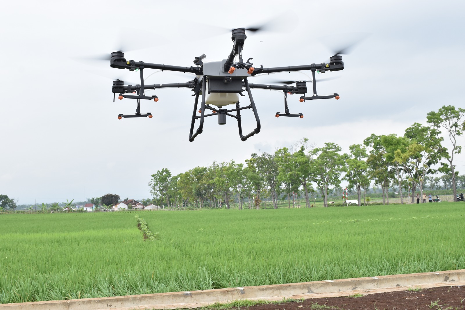 “Kegiatan ini kita lakukan untuk percontohan penggunaan drone pertanian. Mudah-mudahan nanti ke depan menjadi budaya modern bagi petani kita, karena kinerja dari drone ini tentunya lebih menghemat waktu, bisa menghemat tenaga. Sehingga harapan kita pencegahan, penanggulangan, dan pemupukan tanaman padi dan yang lain itu bisa secara efektif,” terangnya.