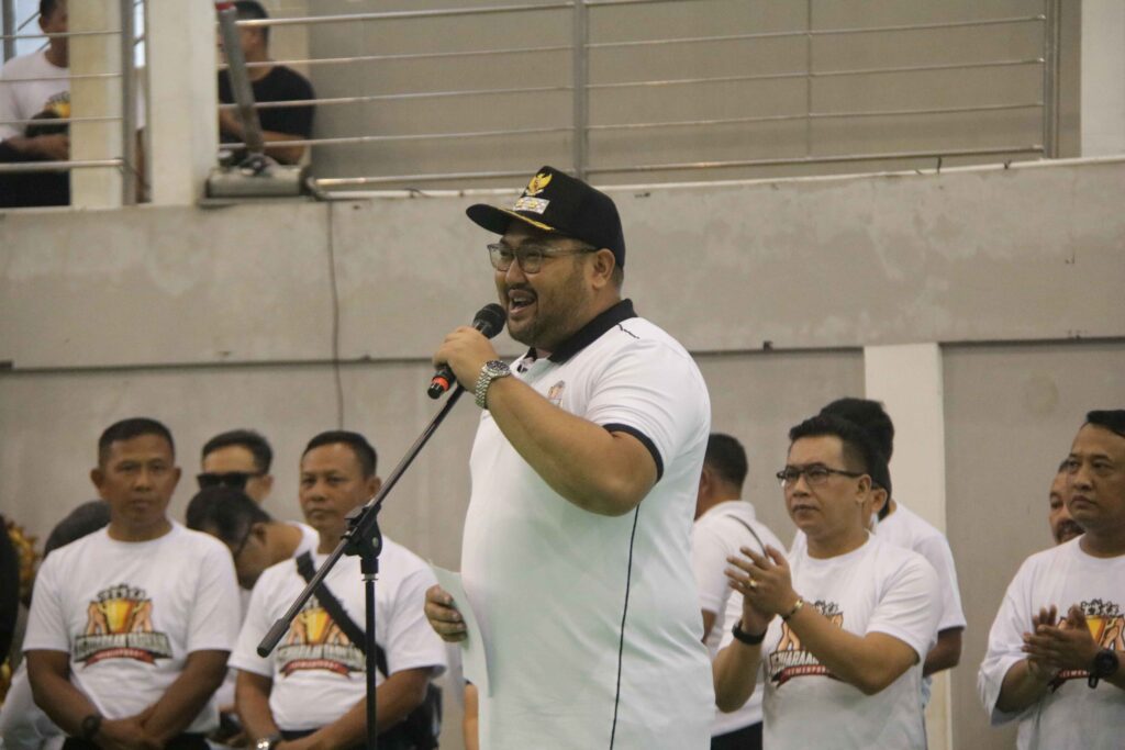 PURBALINGGA – Sebanyak 1.369 peserta yang merupakan atlet dari 18 kecamatan yang ada di Kabupaten Purbalingga akan bertanding dalam ajang Antar Kampung (Tarkam) yang merupakan event olahraga Kementerian Pemuda dan Olahraga (Kemenpora) RI tahun 2025. Kejuaraan Tarkam tersebut dibuka oleh Wakil Bupati (Wabup), Dimas Prasetyahani di GOR Indoor Sasana Krida Perwira (SKP) Purbalingga, Jum’at (7/11/2025) dan dihadiri oleh perwakilan Kemenpora RI, Ketua DPRD, Forkompimda, Ketua KORMI, jajaran pejabat Pemkab Purbalingga.