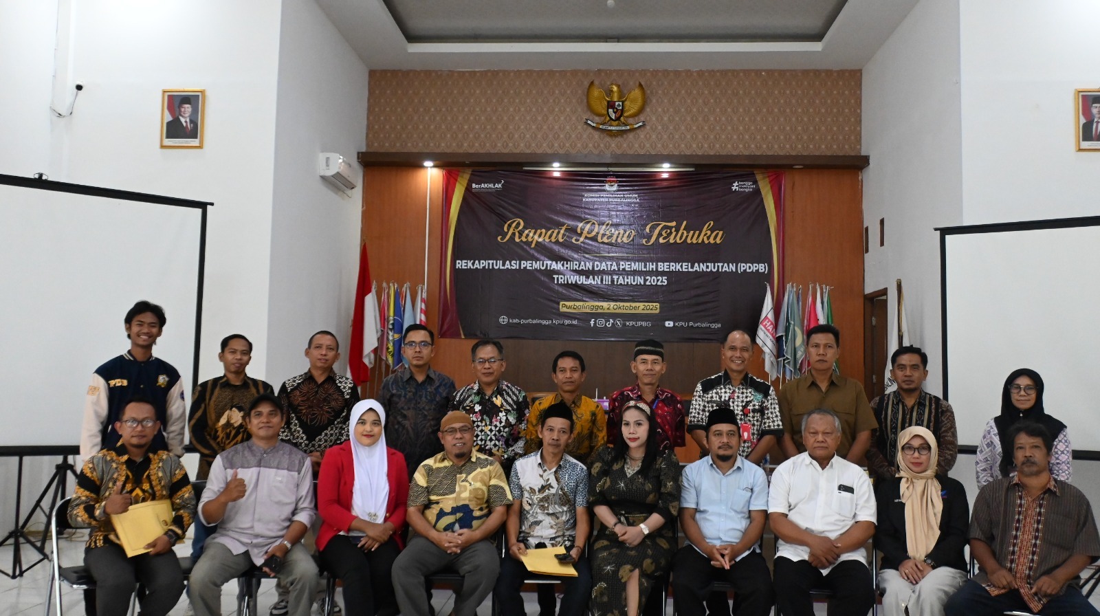 PURBALINGGA INFO– Komisi Pemilihan Umum (KPU) Kabupaten Purbalingga menggelar Rapat Pleno Terbuka Rekapitulasi Pemutakhiran Data Pemilih Berkelanjutan (PDPB) Triwulan III Tahun 2025 di Aula Kantor KPU Purbalingga, Kamis (2/10/25).
