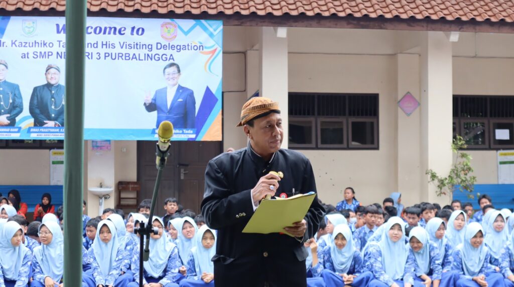 PURBALINGGA INFO – Wali Kota Tono City, Prefektur Iwate, Jepang, Kazuhiko Tada, bersama delegasi Pemerintah Kota Tono melakukan kunjungan ke SMP Negeri 3 Purbalingga, Kamis (18/12/25). Kunjungan tersebut bertujuan untuk bertemu langsung dengan para siswa sekaligus melihat proses pembelajaran serta sistem pendidikan yang diterapkan di Kabupaten Purbalingga.
