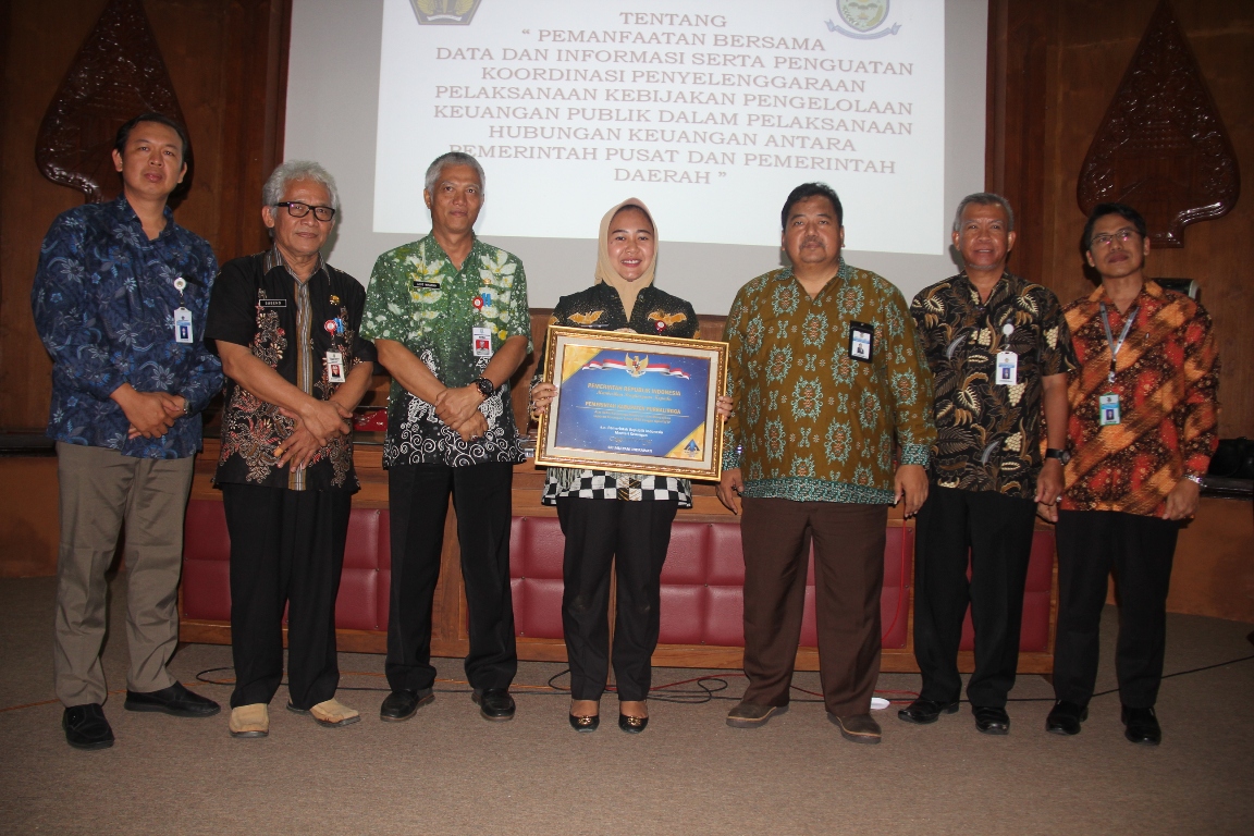 Penyerahan piagam penghargaan Opini WTP dilaksanakan oleh Menteri Keuangan RI yang diwakili oleh Kepala Kanwil Dirjen Perbendaharaan (DJPb) Provinsi Jawa Tengah (Jateng), Sulaimansyah kepada Bupati Purbalingga Dyah Hayuning Pratiwi SE BEcon MM (Tiwi), Kamis (14/11) di OR Graha Adiguna. Bupati mengatakan pemberian penghargaan ini akan semakin memacu semangat bagi seluruh jajaran Pemkab Purbalingga dalam mewujudkan tata kelola pemerintahan termasuk tata kelola keuangan yang transparan dan akuntabel.