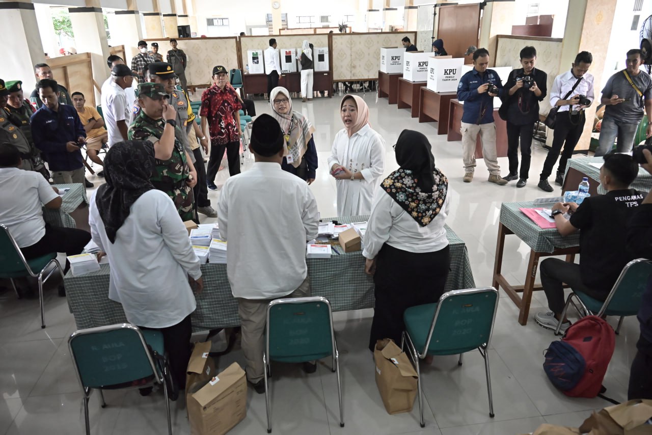 PURBALINGGA – Bupati Purbalingga Dyah Hayuning Pratiwi, Wakil Bupati Purbalingga H Sudono beserta jajaran Forkopimda melakukan monitoring terhadap Tempat Pemungutan Suara (TPS) di masing-masing kecamatan. Kegiatan ini memastikan kelancaran dan kondusifitas kegiatan pemungutan suara.