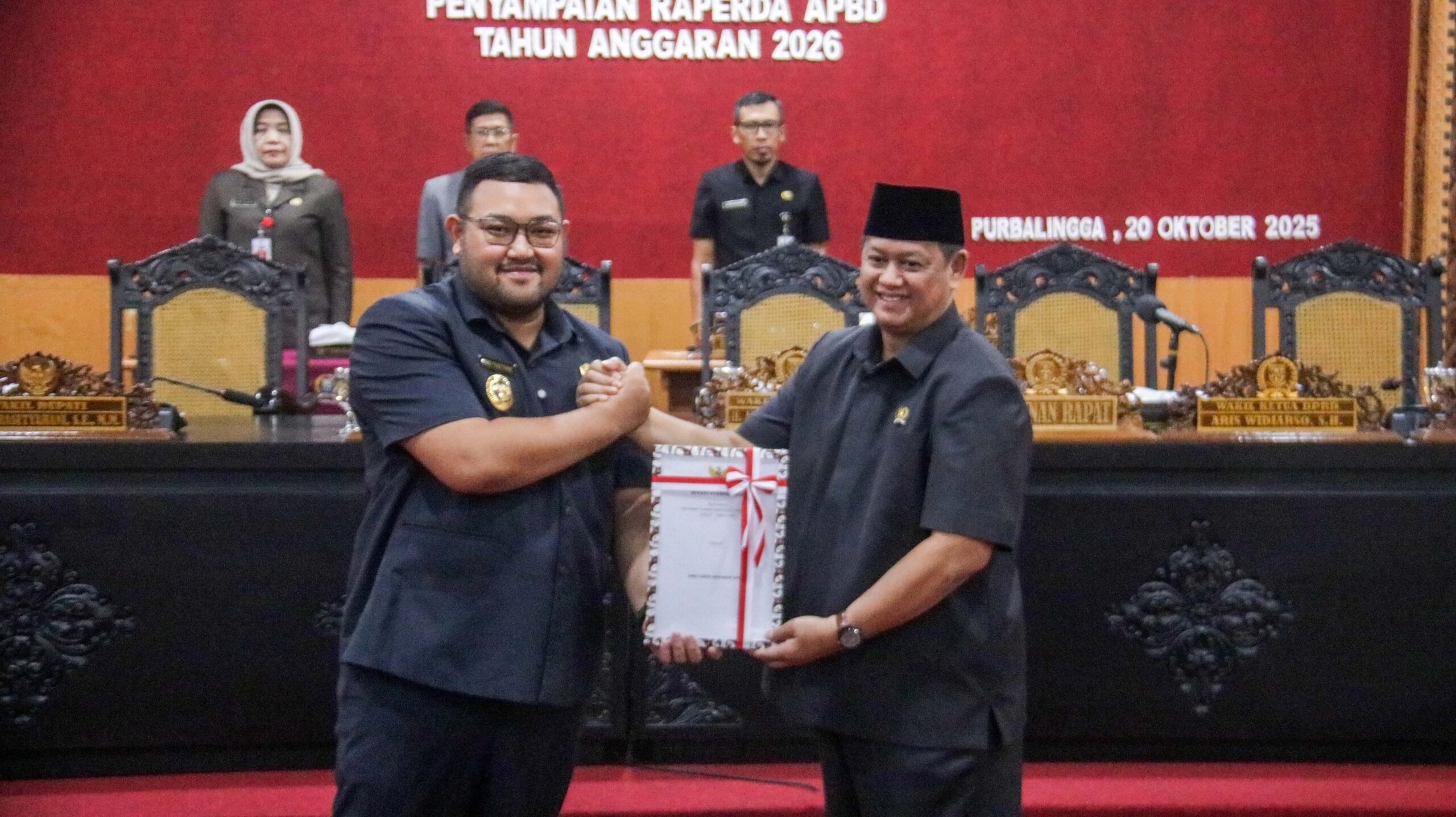 PURBALINGGA – Pemerintah Kabupaten Purbalingga menyampaikan Rancangan Peraturan Daerah (Raperda) tentang Anggaran Pendapatan dan Belanja Daerah (APBD) Tahun Anggaran 2026 dalam rapat paripurna DPRD Kabupaten Purbalingga, Senin (20/10/2025). Rapat berlangsung di ruang rapat paripurna DPRD dan dipimpin oleh Wakil Ketua DPRD Aris Widiarso.