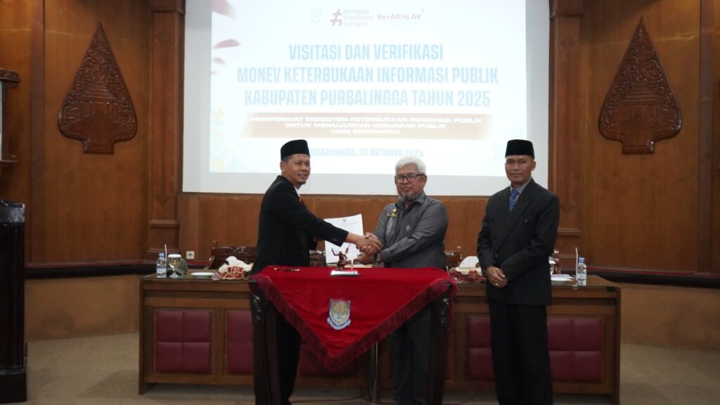 PURBALINGGA INFO – Pejabat Pengelola Informasi dan Dokumentasi (PPID) Badan Publik Kabupaten Purbalingga meraih nilai 99,75 dalam tahap Visitasi dan Verifikasi Penilaian Keterbukaan Informasi Publik oleh Komisi Informasi Provinsi (KIP) Jawa Tengah. Hasil tersebut menempatkan Purbalingga sebagai salah satu kabupaten yang lolos ke tahap selanjutnya, yakni Uji Publik dalam rangka Pemeringkatan Badan Publik Tahun 2025.