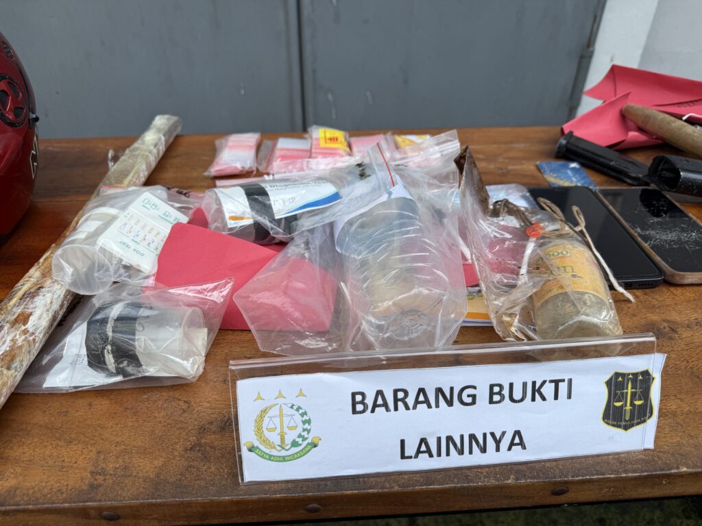 Tidak hanya itu, petugas juga memusnahkan barang bukti minuman keras berupa anggur kolesom, ciu Bakonang, oplosan ketan hitam, serta minuman keras lainnya dengan total volume mencapai beberapa botol dan galon. Barang bukti lain berupa alat komunikasi, senjata angin jenis airgun, serta delapan senjata tajam seperti sabit, pisau lipat, celurit, dan golok juga turut dimusnahkan.