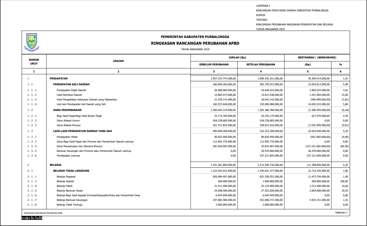 Ringkasan Rancangan Perubahan APBD 2019Posted by Dinkominfo | Jul 29, 2019 | Anggaran Daerah, Berita | 0 | Ringkasan Rancangan Perubahan APBD 2019