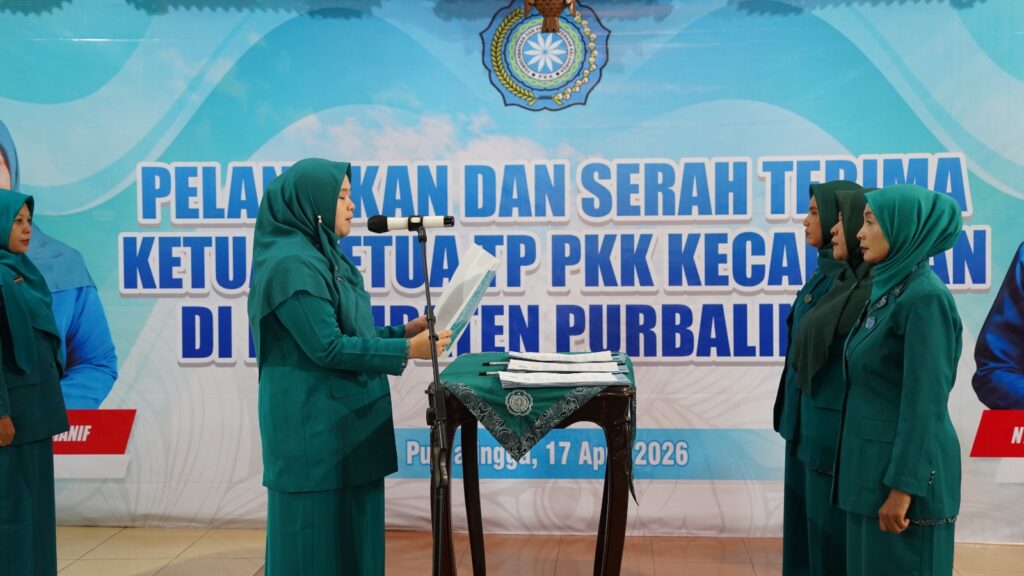 PURBALINGGA INFO – Ketua Tim Penggerak PKK Kabupaten Purbalingga, Syahzani Fahmi M. Hanif, melantik 17 Ketua TP PKK Kecamatan di Pendopo Dipokusumo, Jumat (17/4/26). Kegiatan tersebut turut dihadiri Wakil Ketua TP PKK Kabupaten Purbalingga, Denita Dimas Prasetyahani. Pelantikan ini diharapkan memperkuat peran PKK dalam mendukung peningkatan kesejahteraan keluarga.