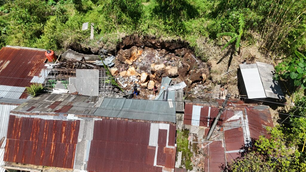 “Longsor berasal dari tebing yang sangat curam di belakang rumah warga. Ketika terjadi ketidakstabilan lereng, material bebatuan langsung runtuh dan mengenai permukiman,” jelas Revon.