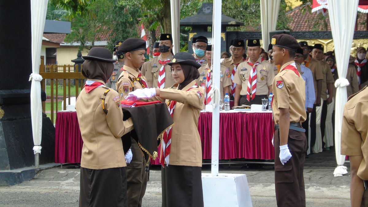 PURBALINGGA – Monumen Tempat Lahir (MTL) Jenderal Soedirman, Desa Bantarbarang, Kecamatan Rembang, menjadi tempat upacara puncak peringatan Hari Pramuka ke-61 tahun Kwartir Cabang (Kwarcab) Gerakan Pramuka Kabupaten Purbalingga, Senin (29/8). Upacara ini melibatkan 700 anggota Pramuka Siaga, Penggalang, Penegak dari 18 Kwartir Ranting (Kwarran), anggota Mabicab, Mabiran, pengurus Kwarcab, Kwarran dan Kamabigus.