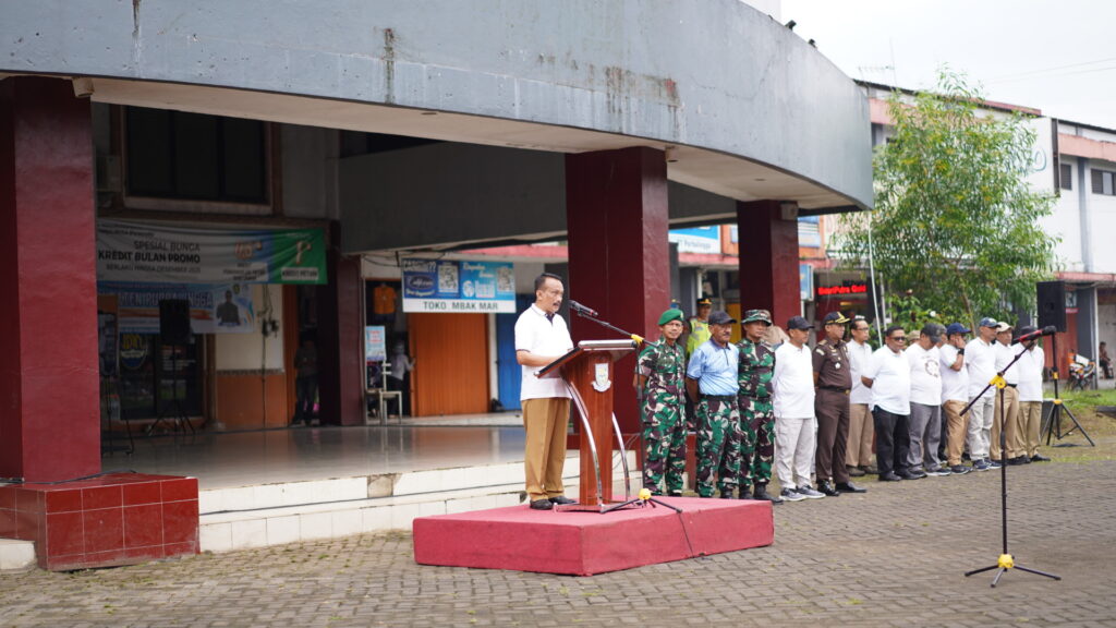 Sejak pagi, para peserta yang terdiri dari jajaran perangkat daerah, Forkopimda, dan berbagai elemen terkait turun langsung membawa perlengkapan kebersihan untuk membersihkan sampah, merapikan fasilitas umum, serta menata lingkungan pasar. Aksi tersebut dilakukan guna memastikan kawasan pusat aktivitas ekonomi masyarakat tetap tertata dan higienis.